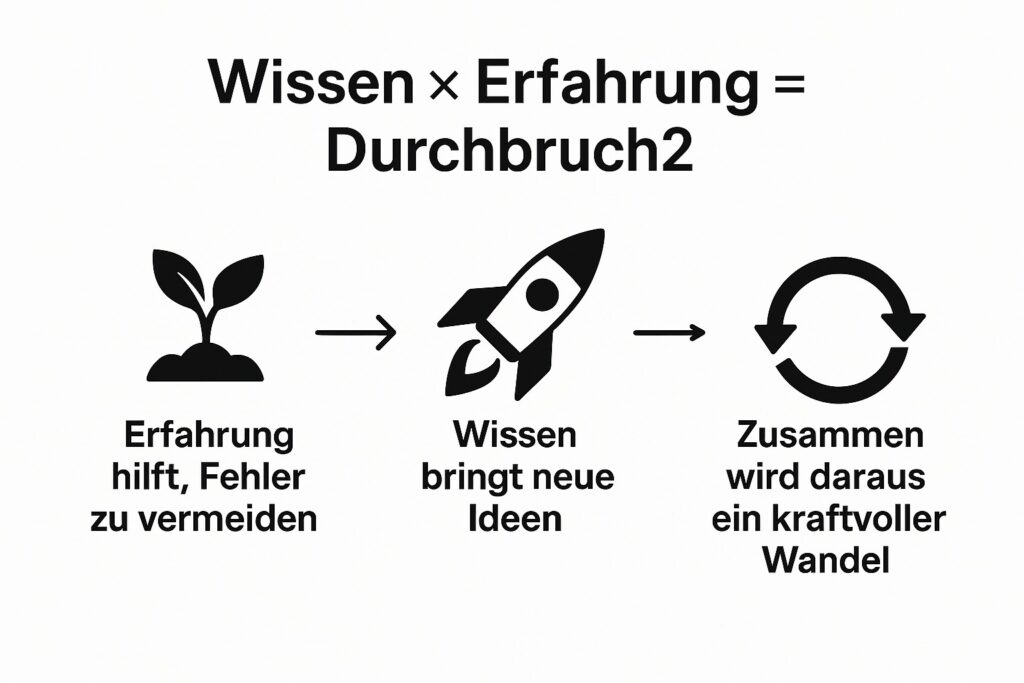 Die Erfolgsformel Wissen × Erfahrung = Durchbruch² zeigt, dass echte Innovation nicht nur aus Theorie entsteht, sondern aus einer klugen Kombination von Wissen und gelebter Erfahrung.